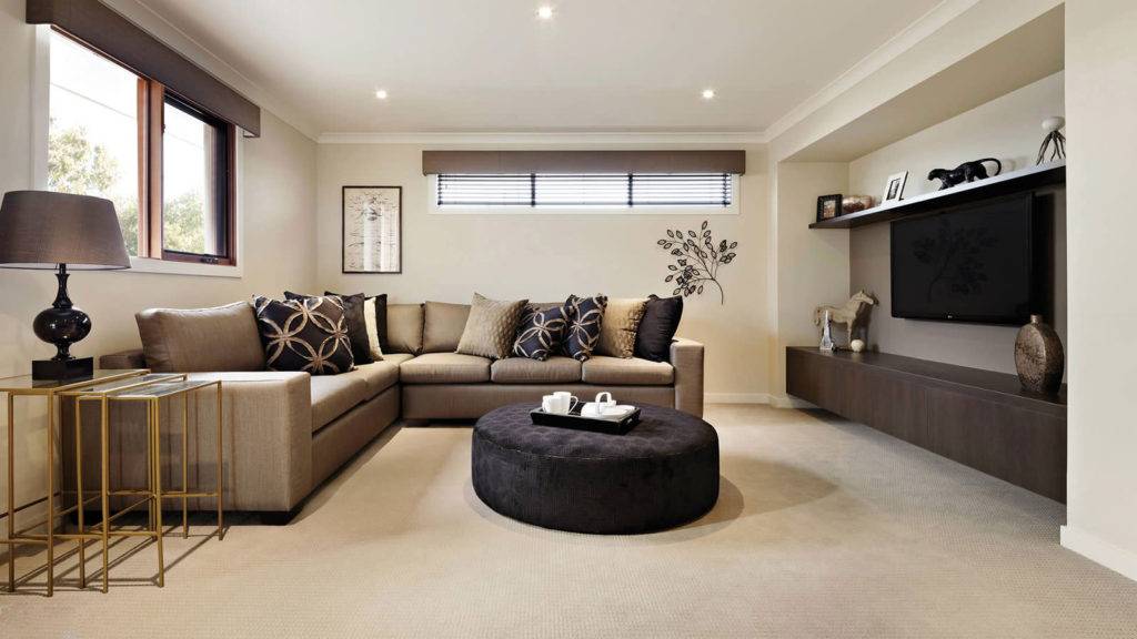 Гостиная – место, где собираются за чашкой чая гости и проводят вечера за просмотром телевизора домочадцы. Способность бежевых оттенков создавать ощущение уюта и тепла в данном случае подходит как нельзя лучше. Наиболее популярными вариантами использования их в гостиной являются: