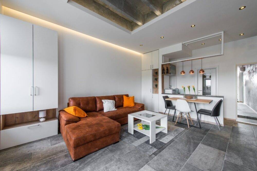 - позволяет эксперементировать с планировкой и различными стилями оформления, включая современные направления;