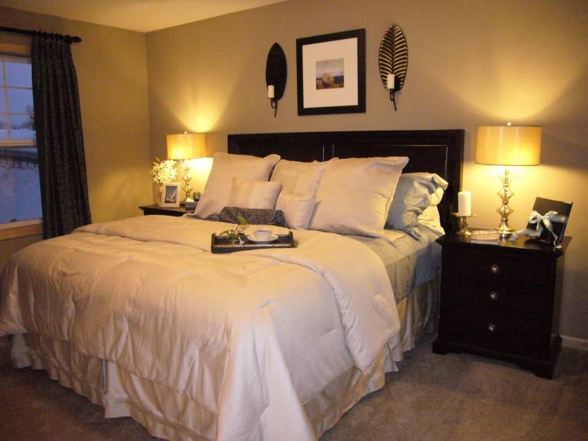 - Бежевый – светлый цвет, который помогает визуально расширить пространство комнаты. Данная цветовая гамма считается одной из лучших именно для обустройства маленькой спальни – ваша комната будет выглядеть просторнее.
