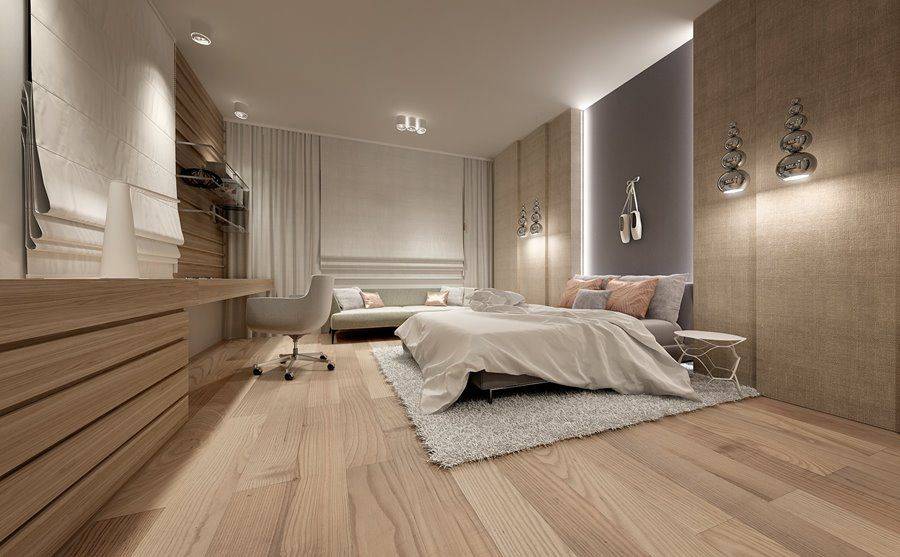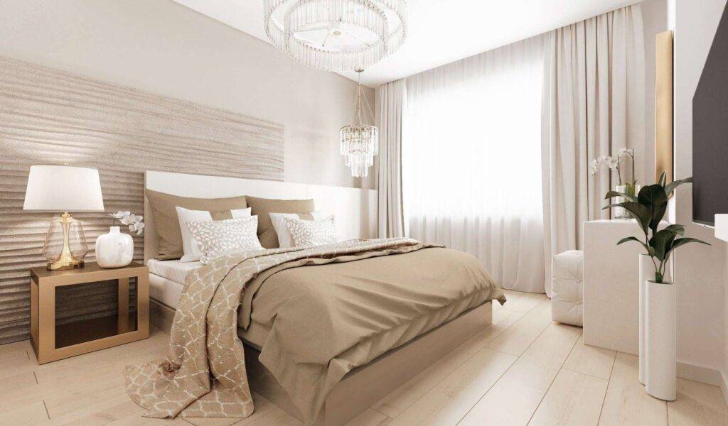 Использование бежевого оттенка для оформления спальни имеет много достоинств: