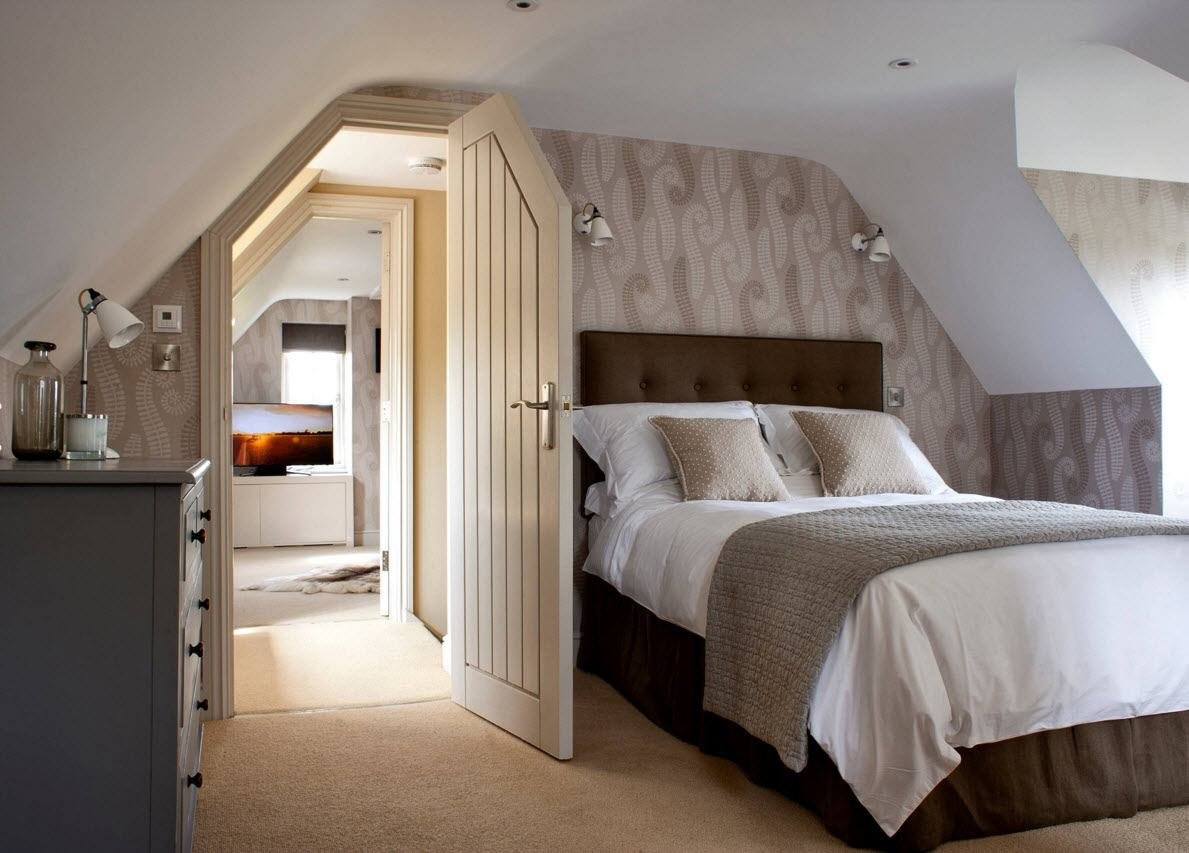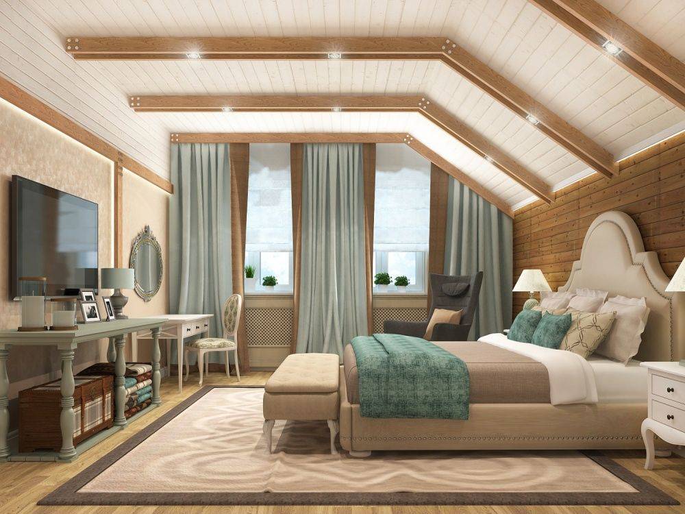 Но никто не заставляет вас довольствоваться деревянными поверхностями стен и потолка. Все можно спрятать и оформить интерьер в любом, понравившемся вам стиле. Сделайте светлую спальню в пастельный тонах, если это вам по-вкусу.