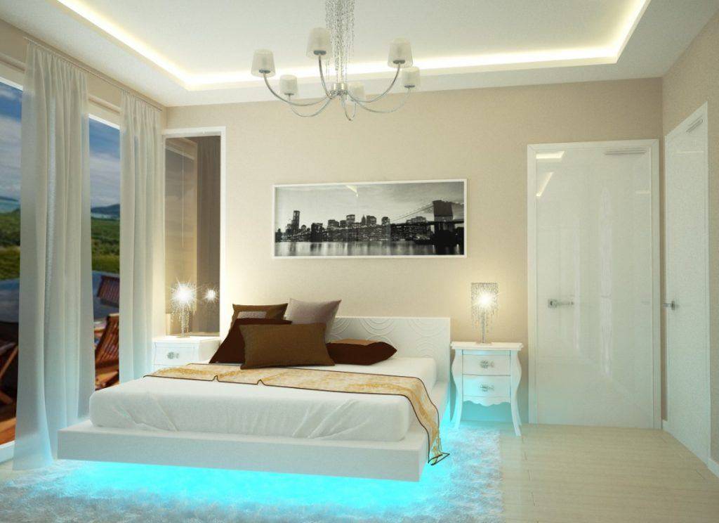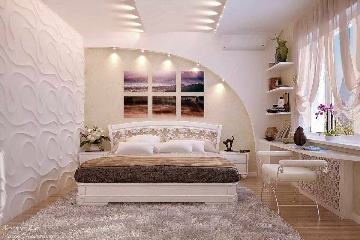 Потолок в спальне. В дизайне современной спальни редко применяются сложные многоуровневые потолки, на сегодняшний день, его все чаще выравнивают в идеальную белоснежную поверхность.