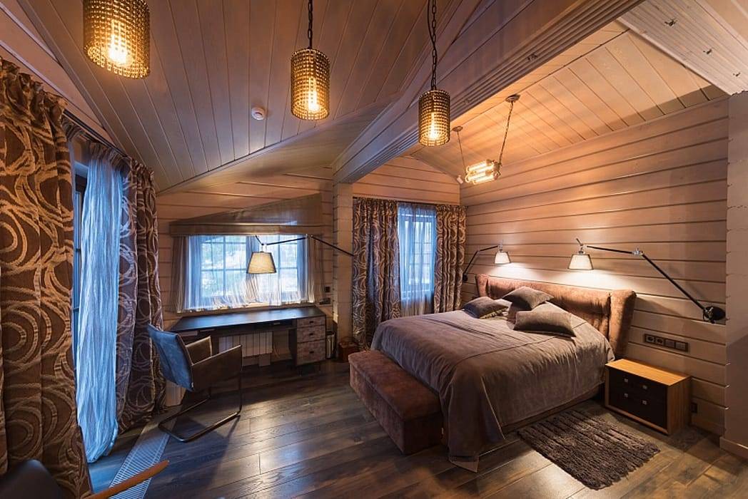 Всегда помнить, что в спальне из бруса можно реализовать практически любой интерьер, но все же существует те, которые максимально подходят для этого, так как они не требуют существенных дополнительных финансовых вливаний и переделок.