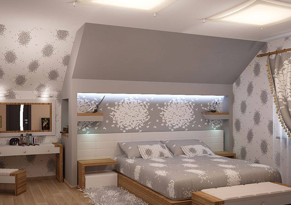 Как правило, акцентируют стену за изголовьем кровати, тем самым подчеркивают главное достоинство комнаты – кровать