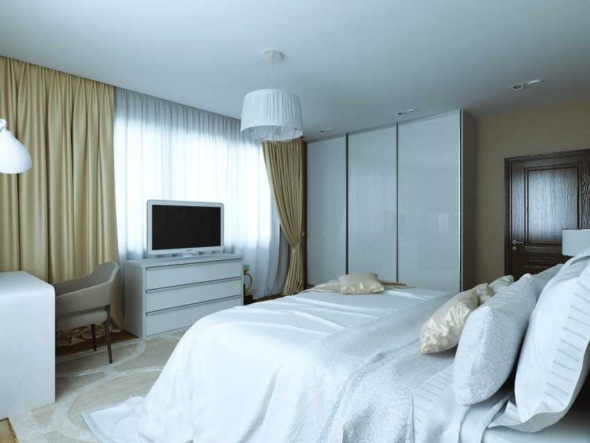 - вам понадобится кровать, прикроватные тумбочки, шкаф для хранения одежды и туалетный столик, если позволяет пространство;