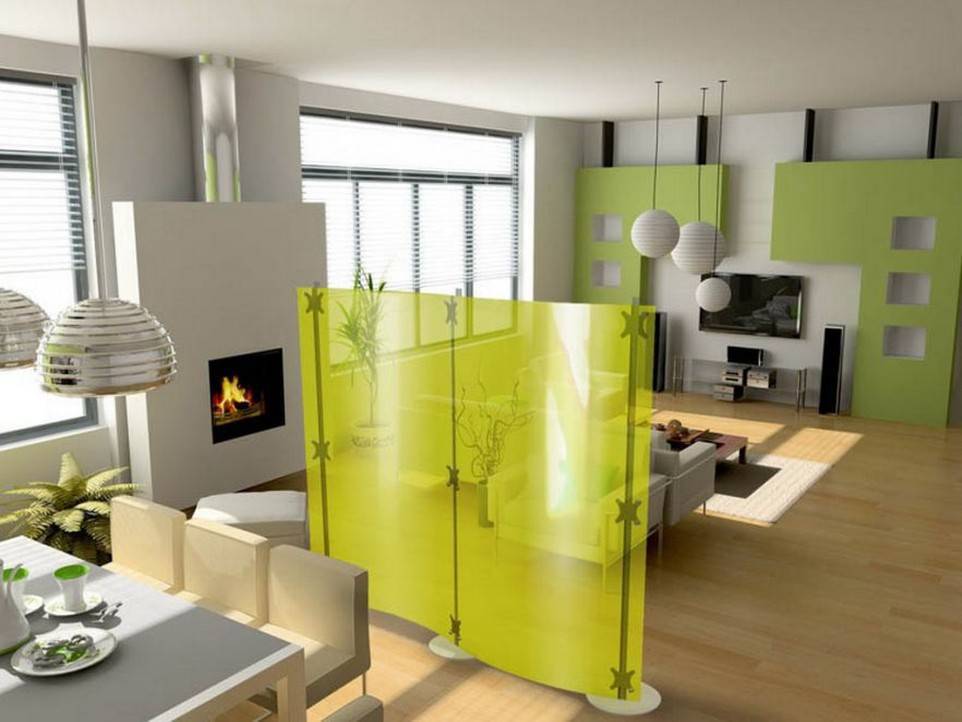 - для разграничения можно использовать ширмы, перегородки, шкафы, стеллажи и прочие мебельные конструкции.