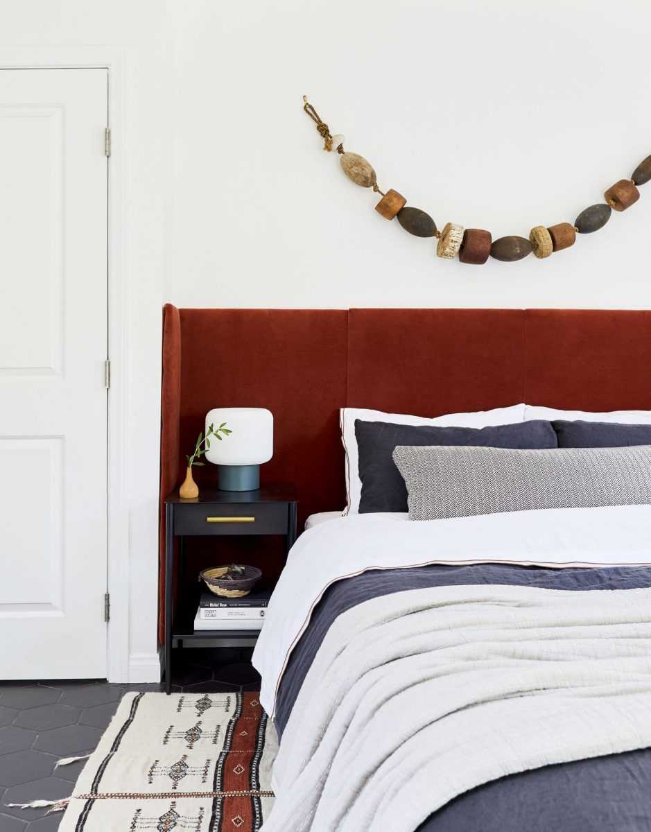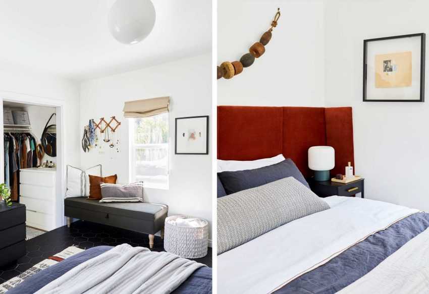Важно выбрать подходящие постельное белье, подушки и обивку дивана, если таковой есть в спальне