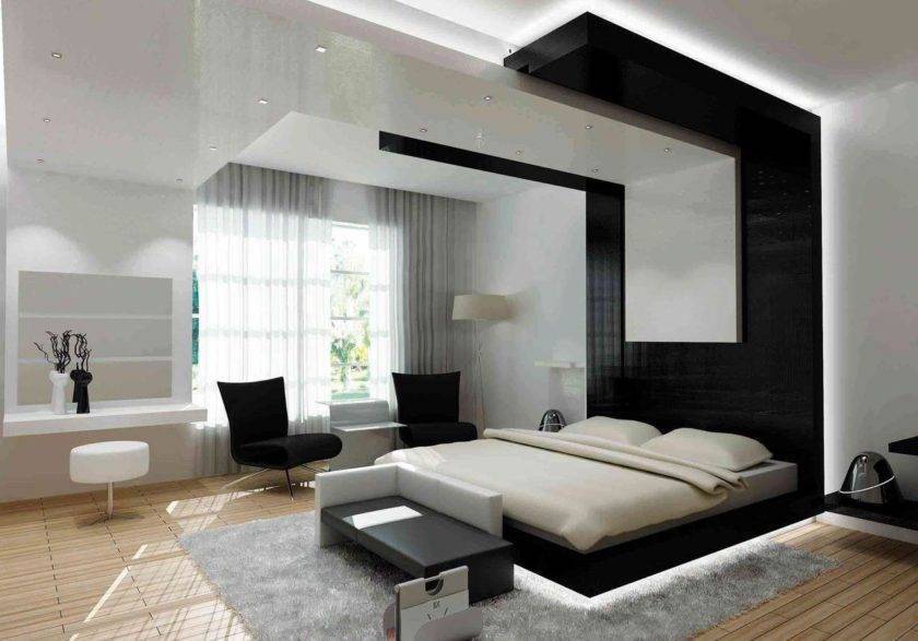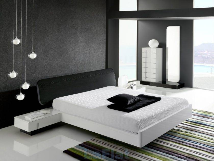 - потолок – преимущественно натяжной акриловый с отливом глянцевого эффекта, который создает зрительную иллюзию увеличения пространства спальни;