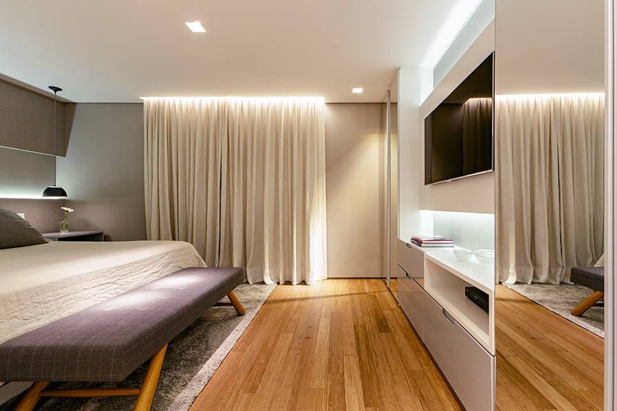 Дизайн спальни 22 м² прямоугольной формы нужно визуально уравновесить. Есть несколько способов это сделать.