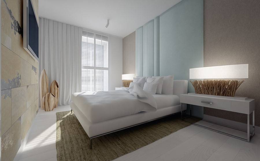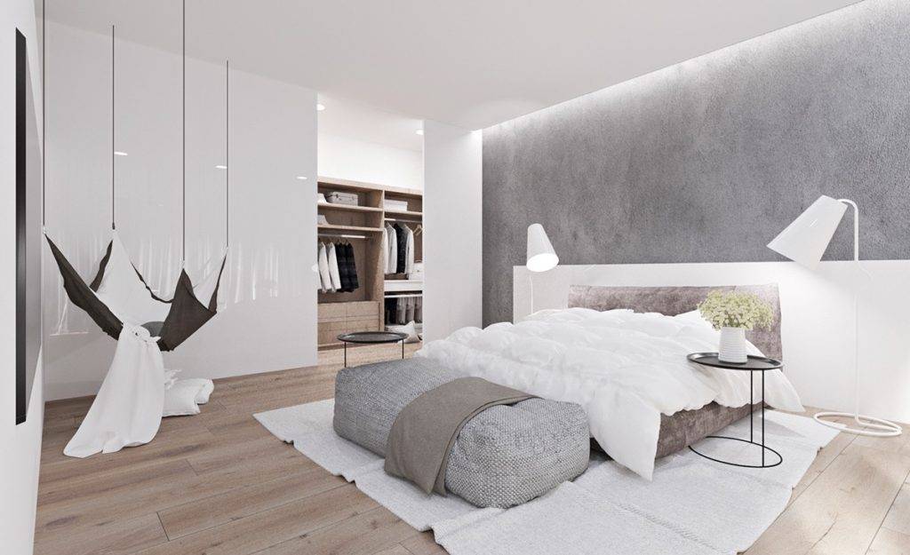 Спальня в стиле минимализм: текстиль, декор, аксессуары