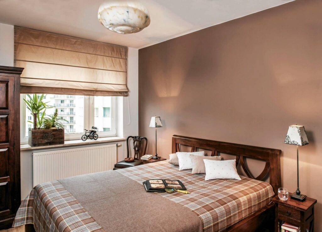 Составить уютный и привлекательный интерьер можно, используя в отделке оттенки коричневого. Например, на фоне темно-коричневых стен будет гармонично смотреться светлая деревянная кровать, дополненная постельным бельем кремового или карамельного оттенка. Для таких обстановок прекрасно подходит приятное теплое освещение, смягчающее и утепляющее темное пространство.