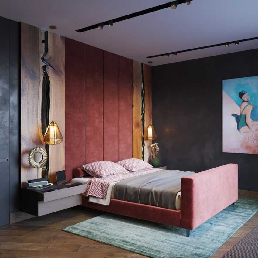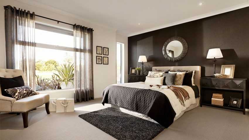 Говоря об интерьере спальни в темных тонах, стоит уделить внимание не только мебели, но и другим элементам интерьера полам, мебель, аксессуарам и текстилю