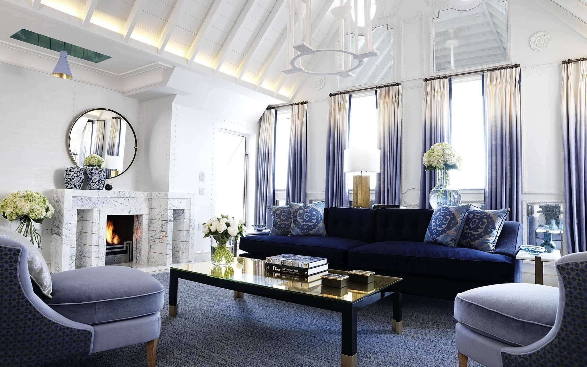 Греческое направление в средиземноморском стиле – это, конечно же, обилие пространства. Чем больше помещение, тем лучше. Комнату окрашивают в ослепительный белый цвет для визуального расширения границ. Средиземноморский греческий стиль в интерьере отличается от других арками, колоннами, открытыми дверными проёмами. Очень аутентично смотрится и грубоватая штукатурка, словно наспех нанесённая мастером. Помимо белого цвета в интерьере присутствует весь спектр синих и голубых оттенков.