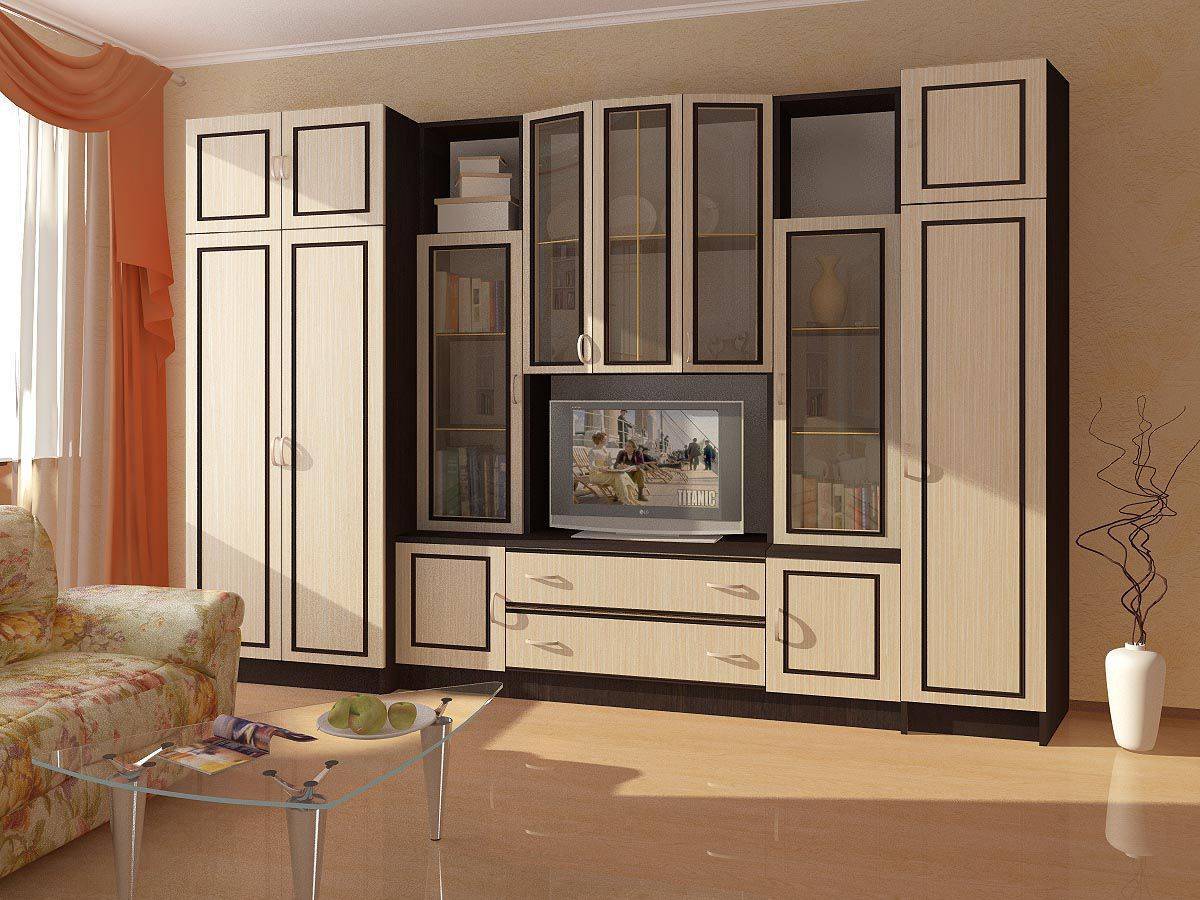 Стенки для зала подбирают в соответствии со своими потребностями. В них хранят одежду, разные мелочи, книги. Есть возможность самостоятельно создать набор модулей, которые действительно пригодятся и исключить ненужные.