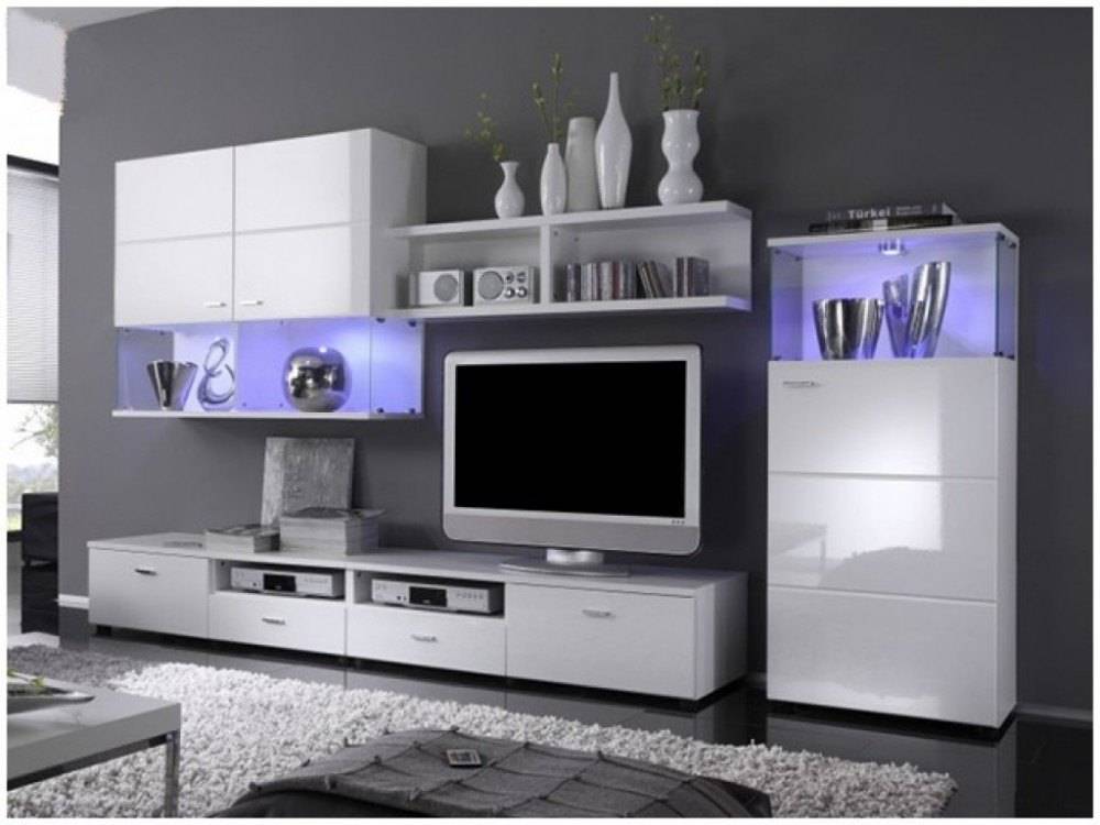 На фото современная гостиная с глянцевой стенкой-пеналом белого оттенка.