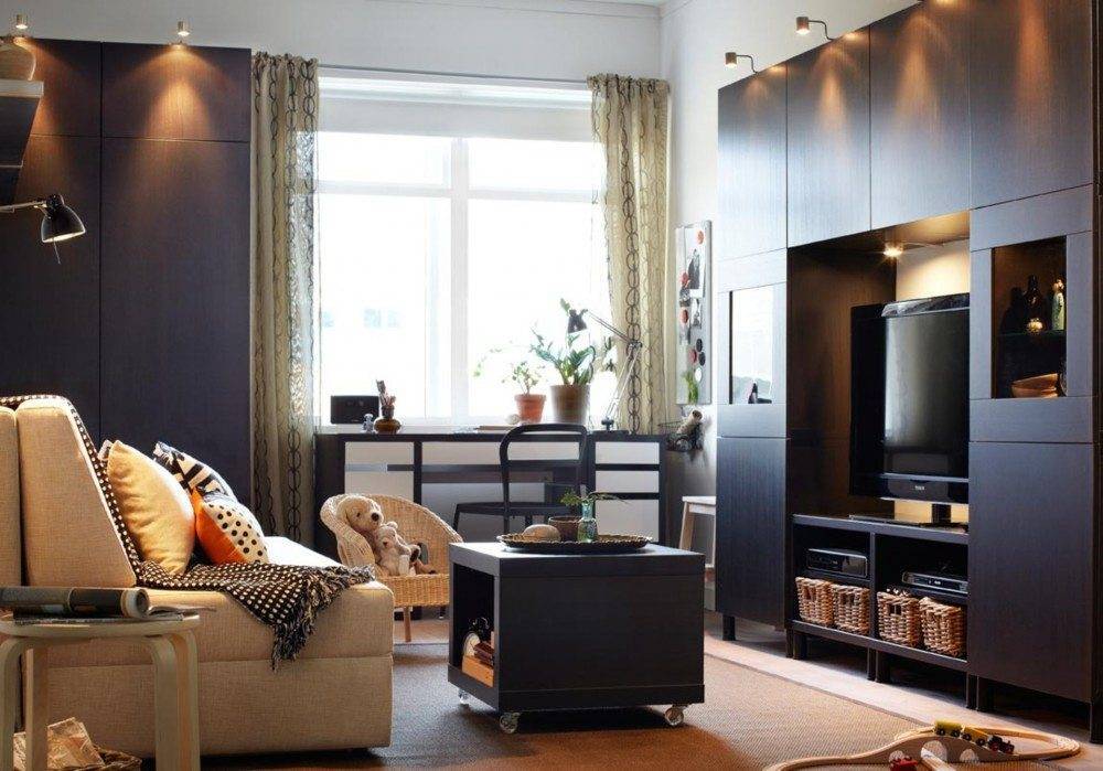 Вдоль стены чаще всего устанавливают стенку, независимо от размера помещения. Такое размещение уже считается некой классикой. Ведь именно в гостиной собираются члены семьи для уютных семейных вечеров или просмотра интересного фильма. Поэтому все должно быть размещено максимально комфортно.