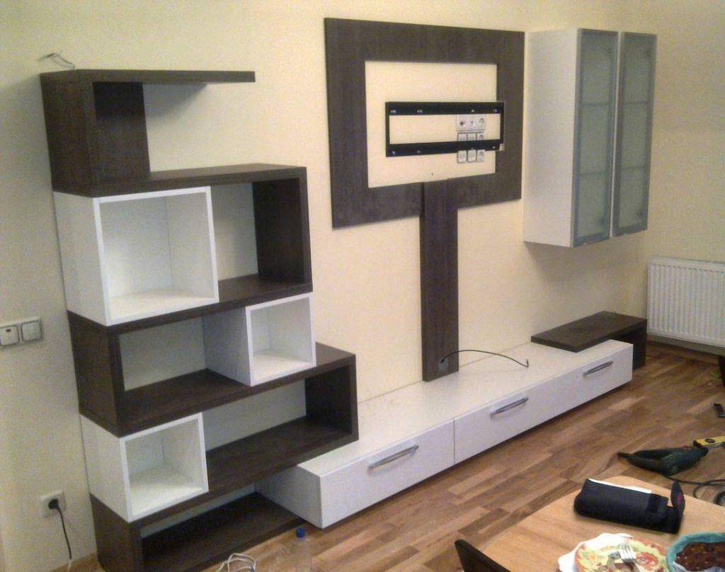 Оригинальная конфигурация обеспечивается и за счет разной высоты установки отдельных узлов. Учитывая большую популярность модульных композиций, производители специально производят отдельные секции из одной серии, прямые, П-образные, угловые стенки. В прямоугольных комнатах прямая стенка своими руками – лучшее решение.