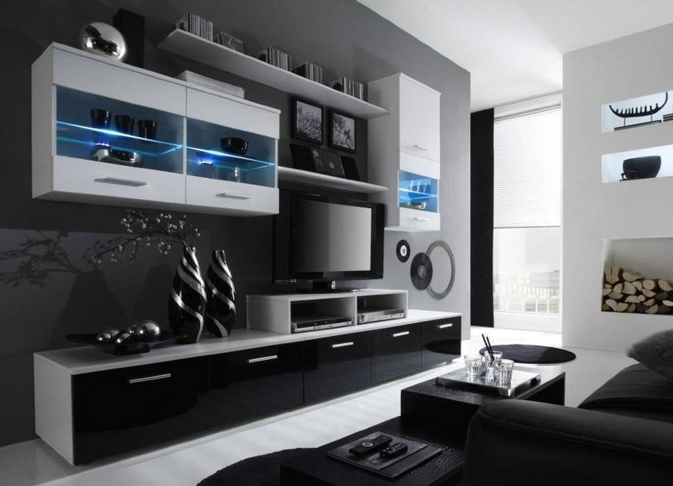 Выразительно может выглядеть стенка черного цвета. Сама комната при этом должна быть оформлена в светлой гамме, чтобы темный гарнитур на ее фоне не смотрелся мрачно и угрожающе. Черный отлично сочетается с множеством других цветов. Соединяя их, можно получить оригинальное стилистическое решение. Давно зарекомендовало себя соседство черного с белым.