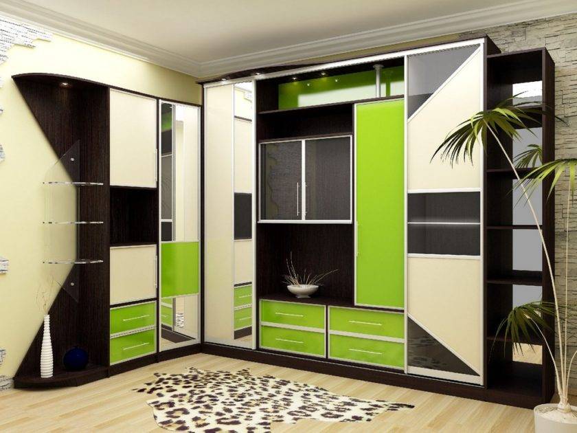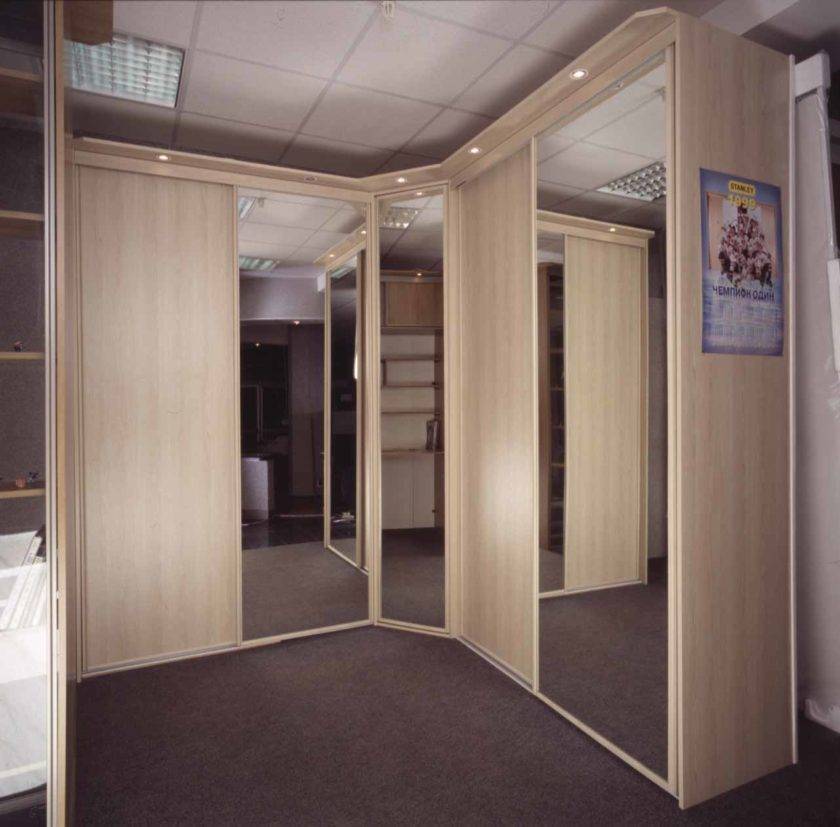 Отличительной характеристикой от линейного шкафа является расположение — в углу комнаты, а не вдоль стены.