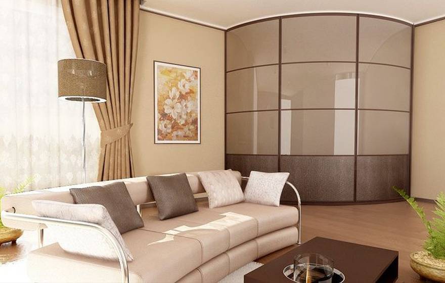 Угловые шкафы купе в гостиную: фото примеров, недостатки и достоинства конструкций