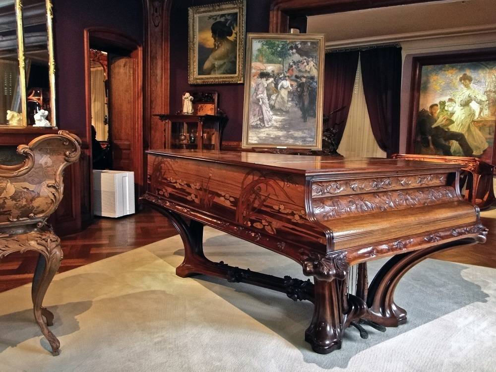 В интерьерах, оформленных в стиле арт нуво, обычно применяется массивная деревянная мебель. Однако она не кажется такой громоздкой и тяжелой, как в классических апартаментах. Подобный эффект достигается, благодаря витиеватому переплетению линий арочных проемов, карнизов, лестничных перил, спинок кроватей и фасадов шкафов, которое образует причудливое кружево. Конфигурация предметов меблировки тоже весьма специфична: нестандартные формы только приветствуются. Удивительно, но в этом нюансе арт нуво схож с футуризмом, для которого тоже свойственно применение «обтекаемых» деталей.