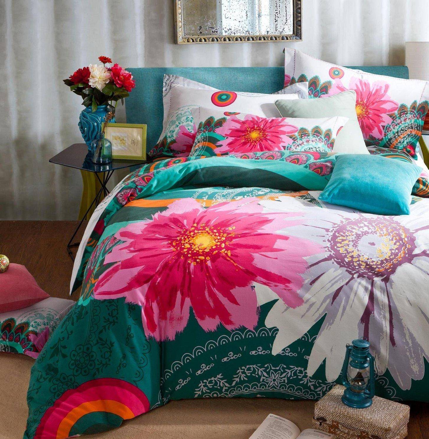 Спальня в стиле бохо с бирюзовой стеной
