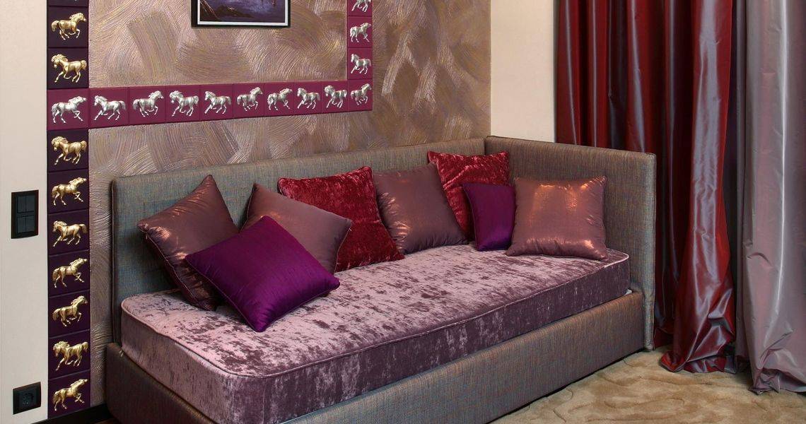 Вот в комнате отдыха возможны трудности. Поскольку это зона для сна, то в ней нежелательно изобилие кричащих акцентов. Поэтому к гладкой фактуре стен добавляют тяжелые шторы. Полы закрывают коврами, а кровать застилают покрывалом. А для того, чтобы это все выглядело, как стиль китч, на всех поверхностях необходимы разнообразные орнаменты и узоры. Но в меру.