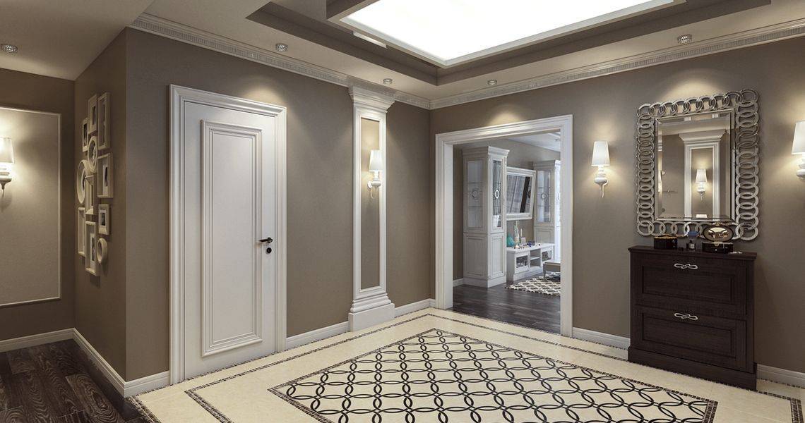 Особой роскоши привнесет в помещение потолочная лепнина. В качестве отличного декоративного элемента выступят ниши, которые также предоставят полезное место для хранения вещей.
