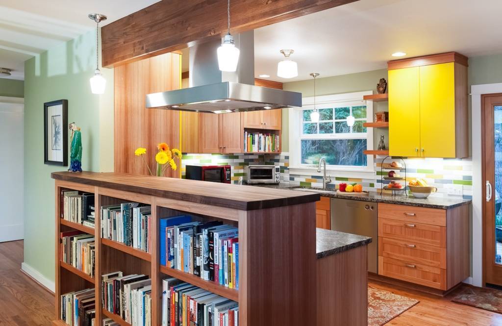 Кухня в стиле фьюжн с деревянной мебелью в ярких оттенкахИсточник idcollection.ru