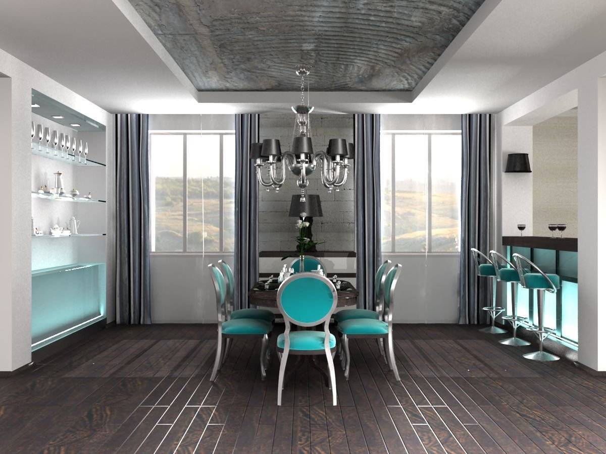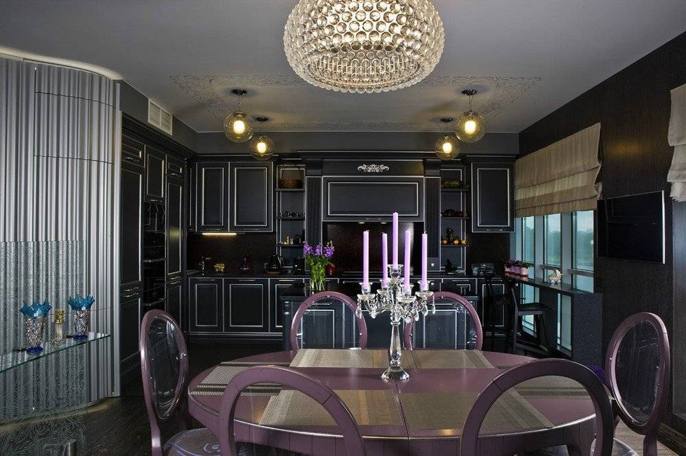 При обустройстве таких помещений используют элегантные модульные кухонные гарнитуры и при этом незамысловатые мебельные изделия. Один из предметов мебели нужно сделать акцентным, от него и будет отталкиваться остальное оформление.