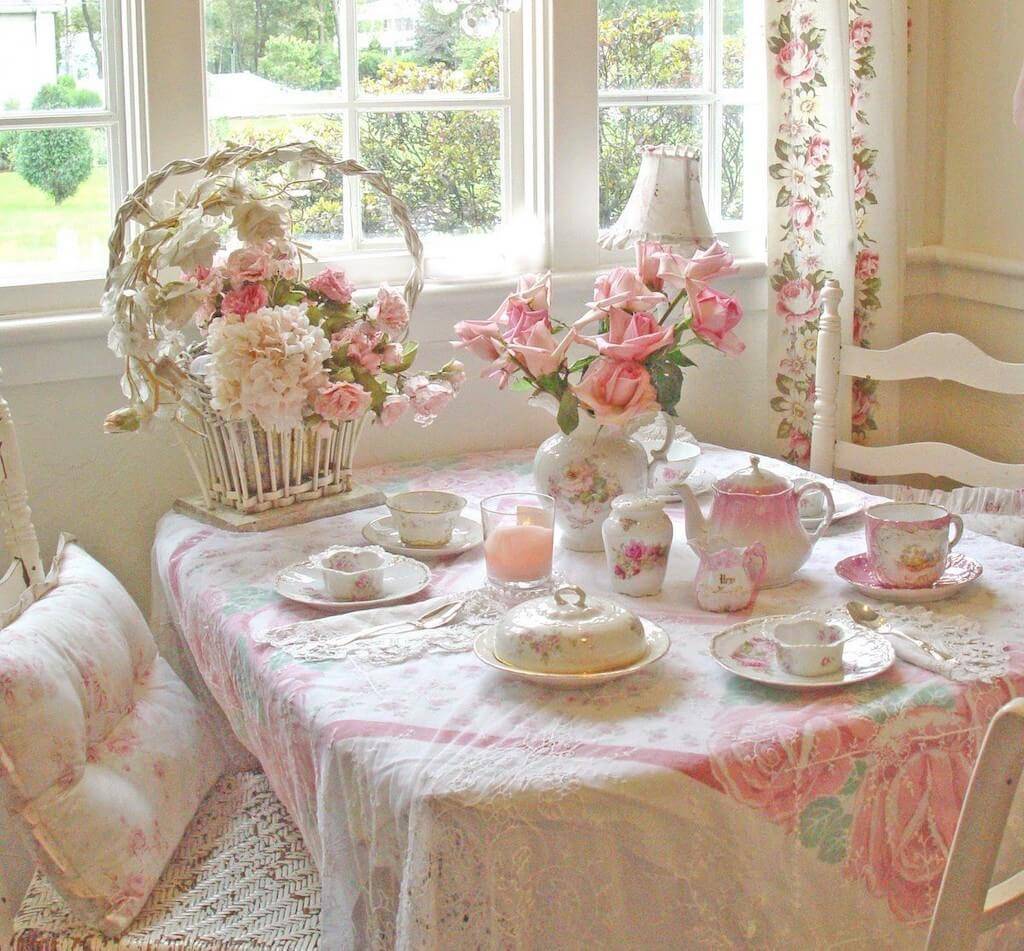Помимо цветов, у шебби-шика есть также классический узор — розы. Они могут быть где угодно, но их не должно быть слишком много и они должны быть одного из основных цветов.