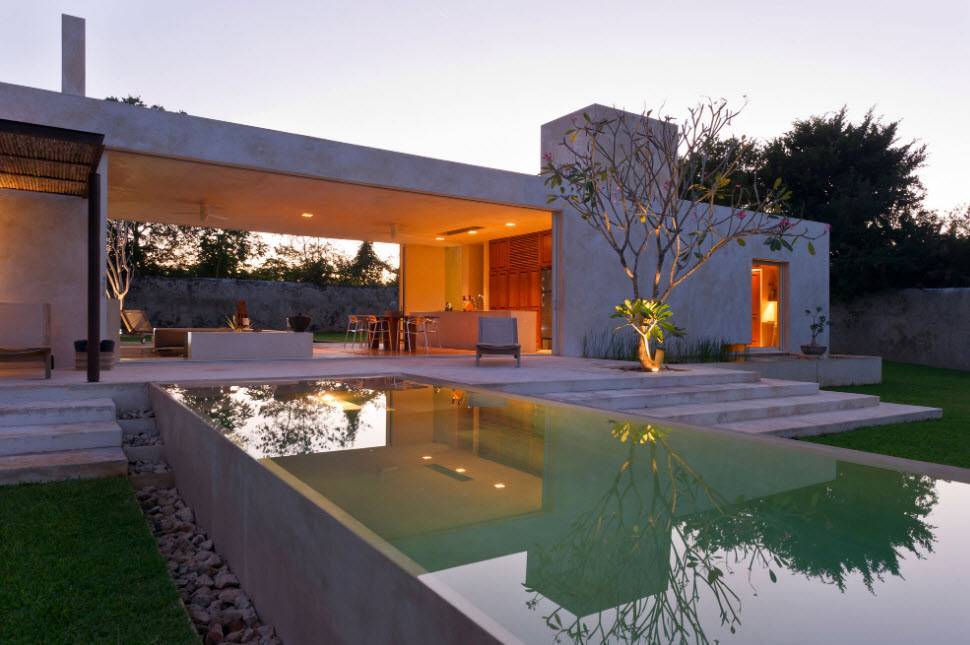 Одним из наиболее часто используемых элементов экстерьера двора в средиземноморском стиле считается бассейн.