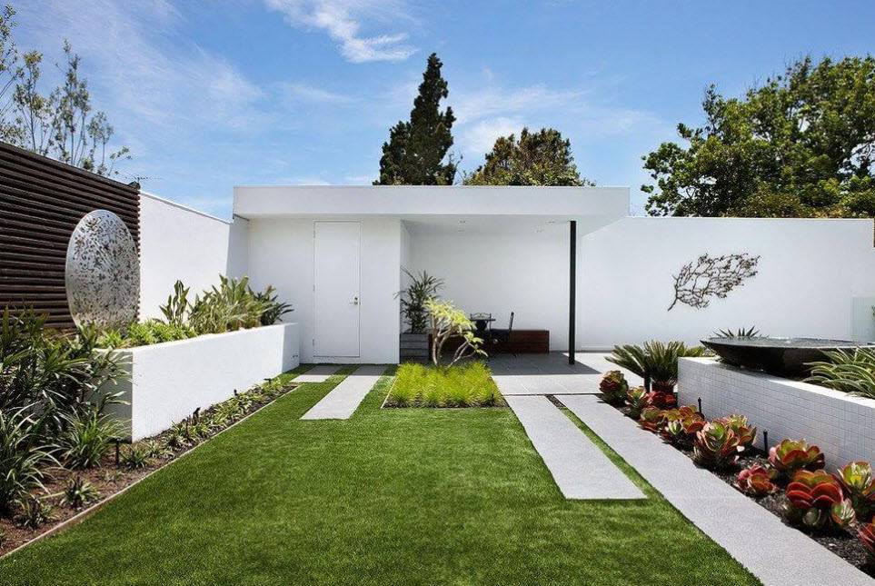 Садовый минимализм полностью повторяет идеи аналогичного стиля, используемого в интерьере. На первый план выходит простота и лаконичность форм, минимум деталей, но организовать участок подобным образом не так легко, как может показаться на первый взгляд, ведь при минимуме составляющих необходимо полностью раскрыть вложенную идею.