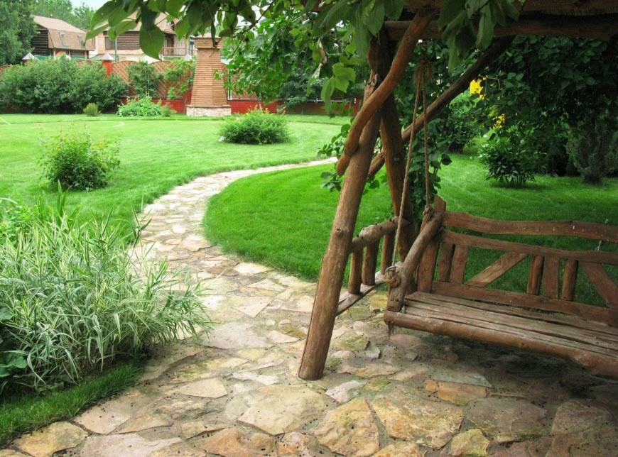 Дорожки и тропинки не должны быть тупиковыми и утыкаться в стену. Правильнее сформировать целую сеть небольших удобных тропинок, которые размеренно огибают и охватывают все ландшафтные элементы на территории участка