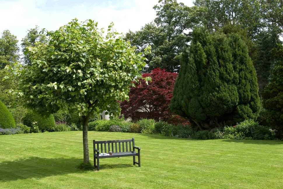 Деревья служат в качестве обрамления периметра, могут выступать в качестве центрального звена композиции. Вариантов рассадки несколько: