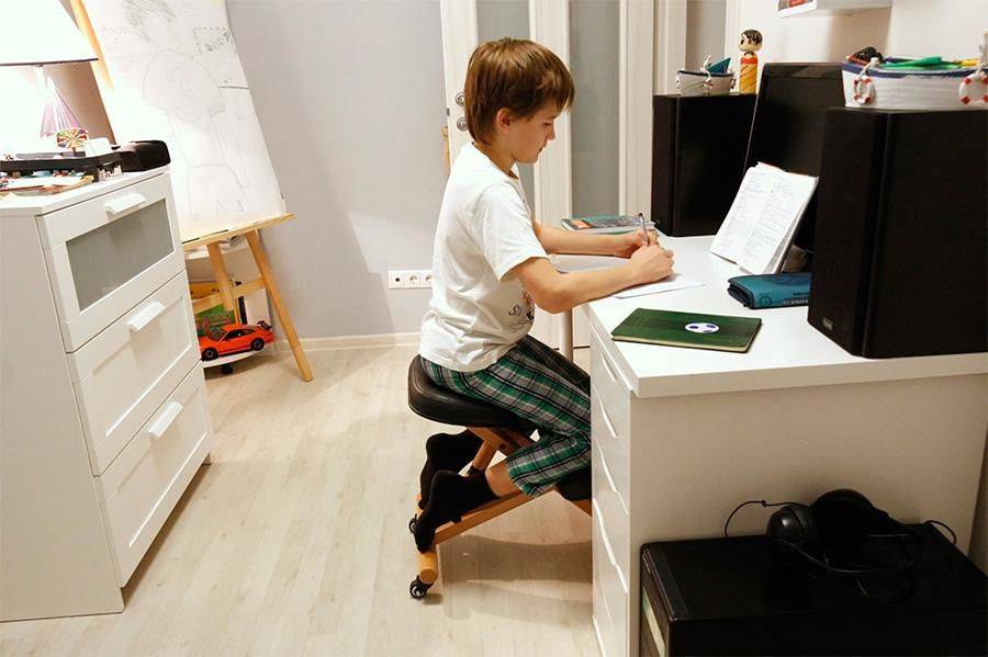 Стул не имеет спинки и заставляет мышцы спины постоянно работать.