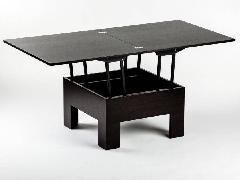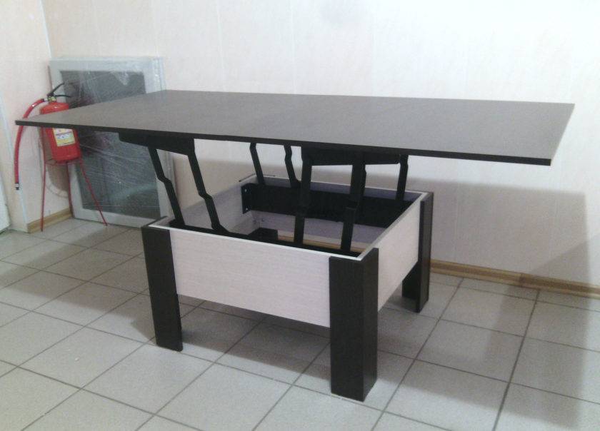 Имеет механизм по типу слайдера. Под основной столешницей, как правило, вложена еще одна – дополнительная.