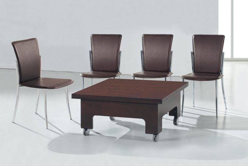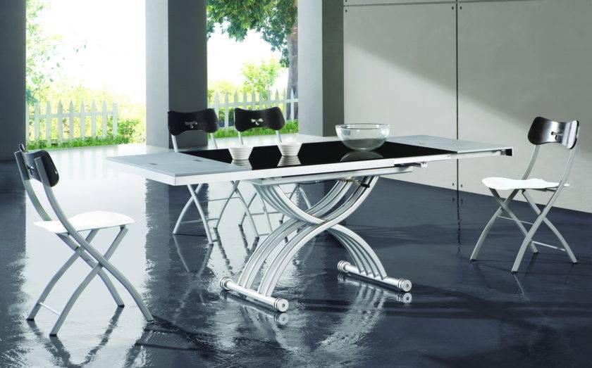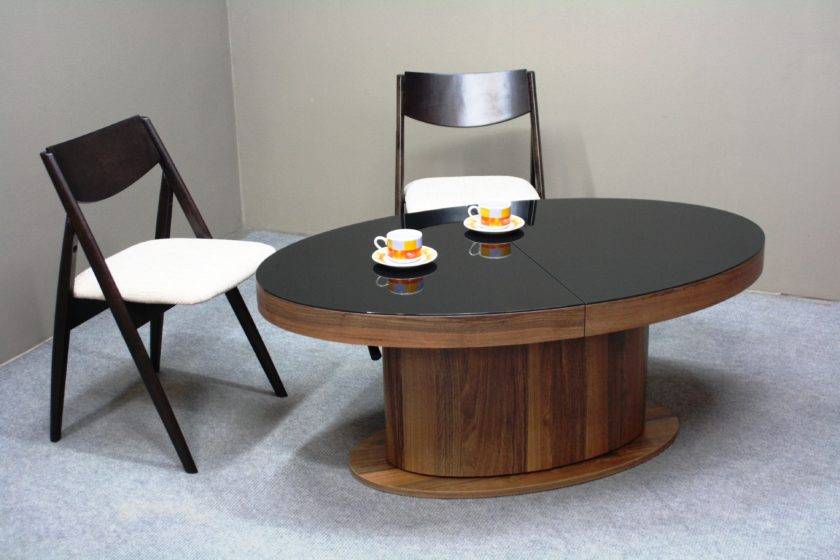 Он может иметь различный механизм раскладки. Современные конструкции, как правило, удобны в обращении: быстро превращаются из миниатюрного столика в просторный обеденный стол на 4-6 персон. Справится с ним даже ребенок.