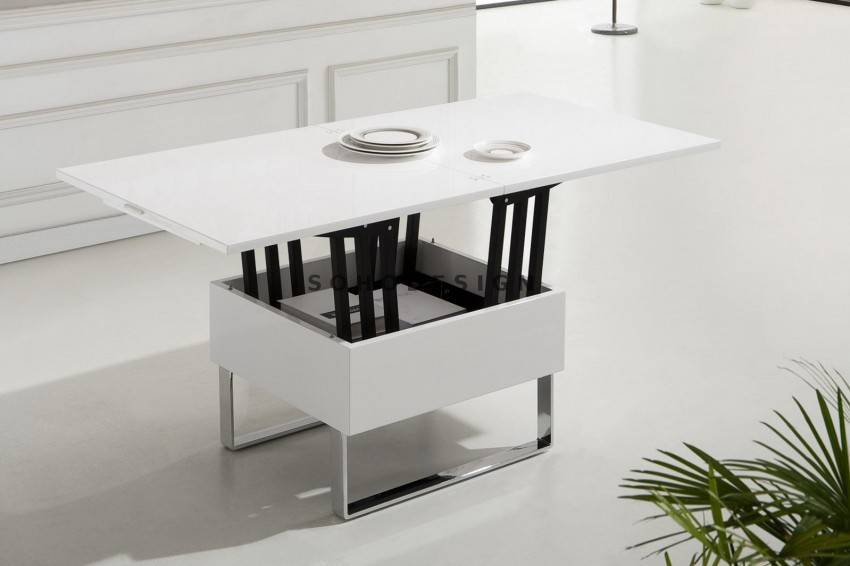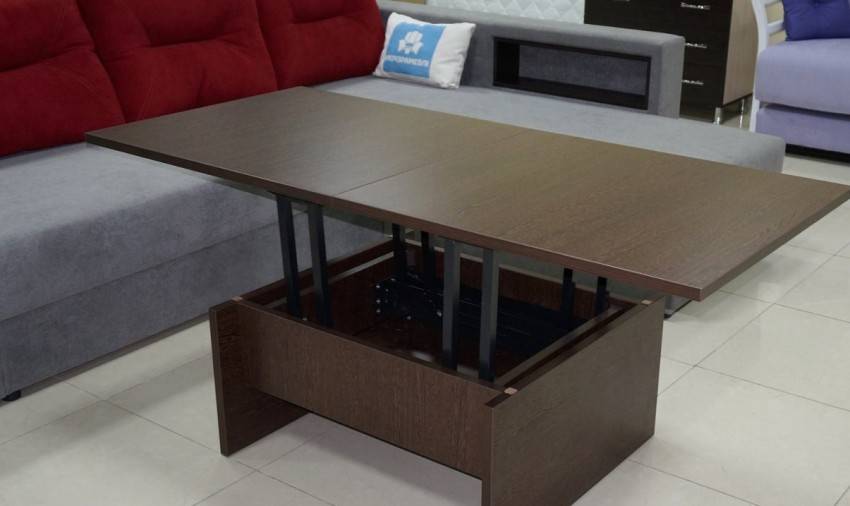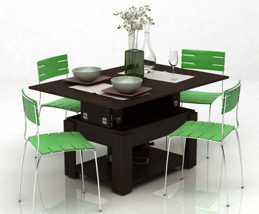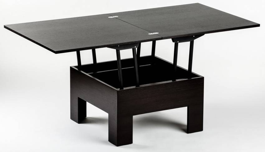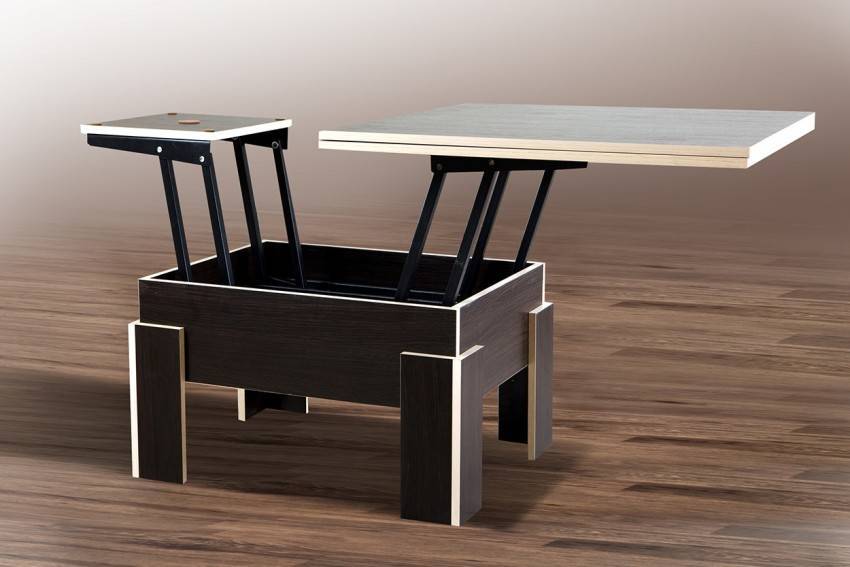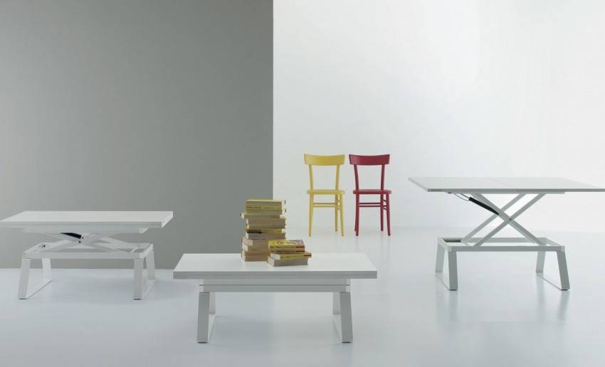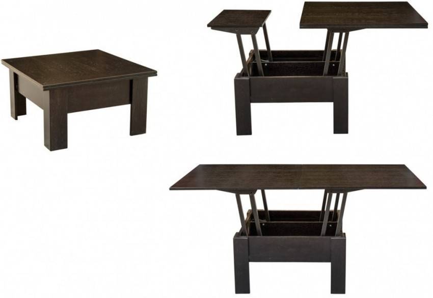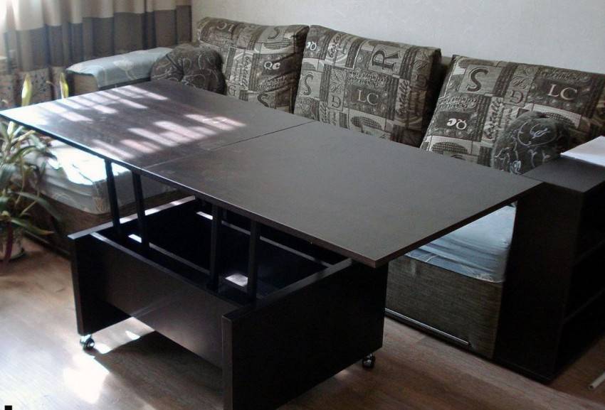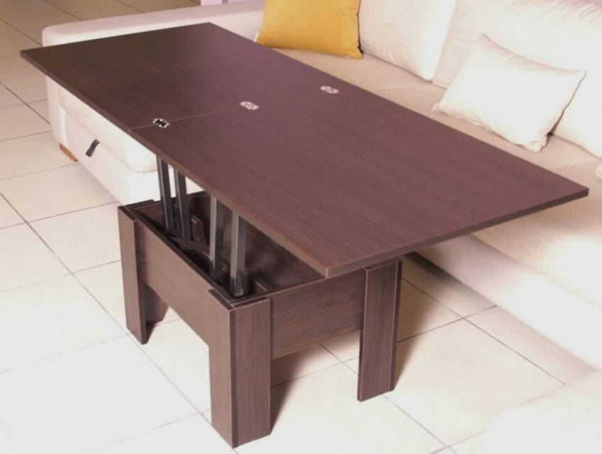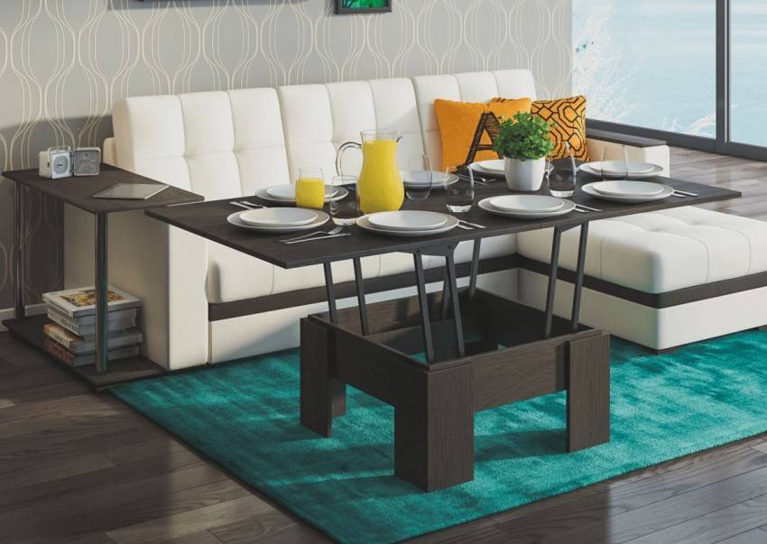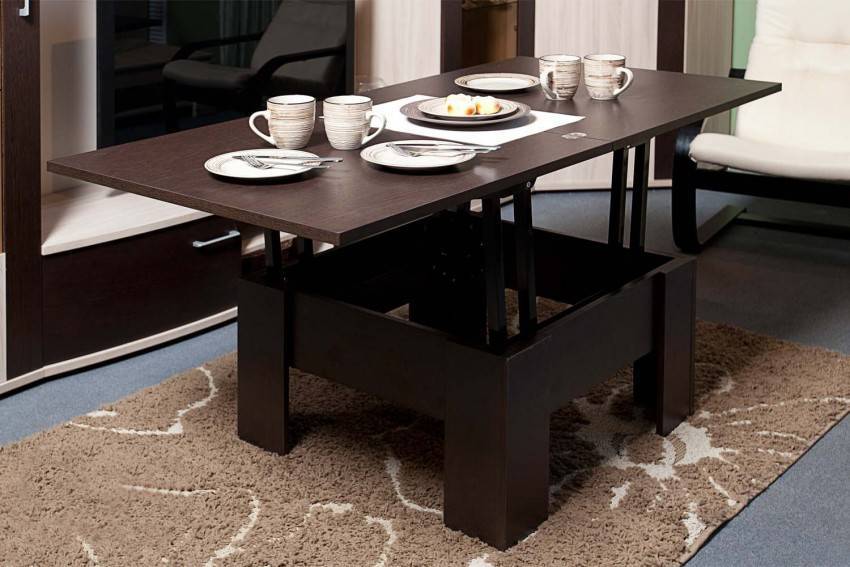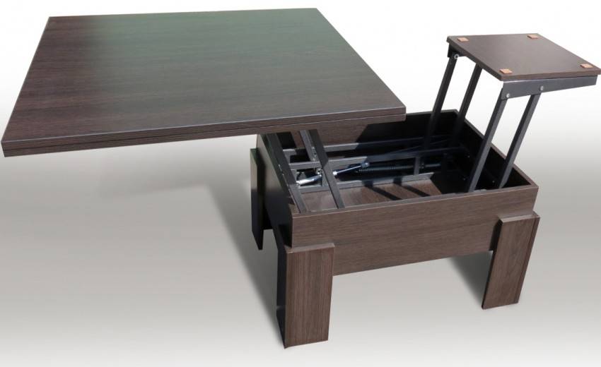 Производителями мебели выпускаются журнальные трансформеры, которые при необходимости превращаются в высокий обеденный стол.