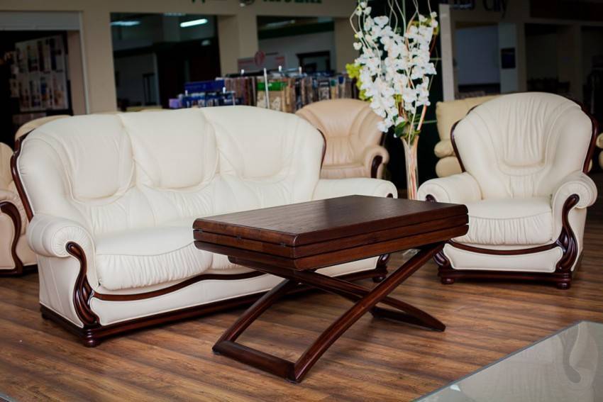 И стол, и стулья для гостиной относят к категории твердой мебели. Однако сиденье и даже спинка у него может быть мягкой.