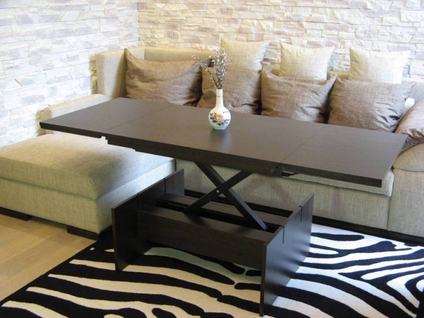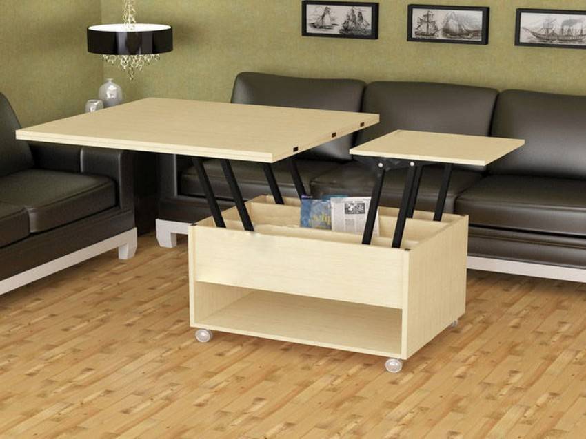 Для гостиных подойдут журнальные столики, которые трансформируются в обеденный стол или рабочее место.