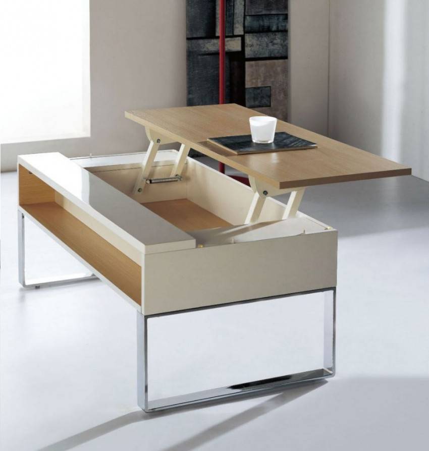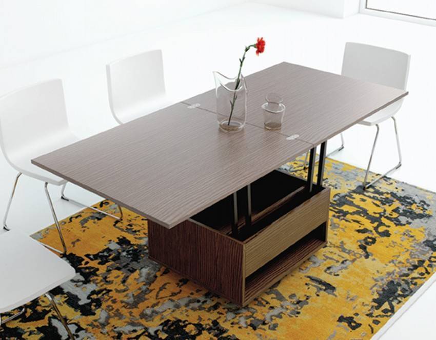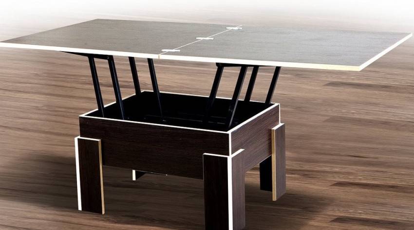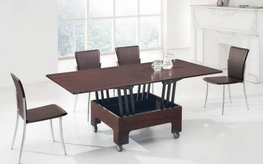 Для миниатюрных квартир существует большой выбор столов-трансформеров для гостиной, которые могут сочетать в себе другие предметы мебели
