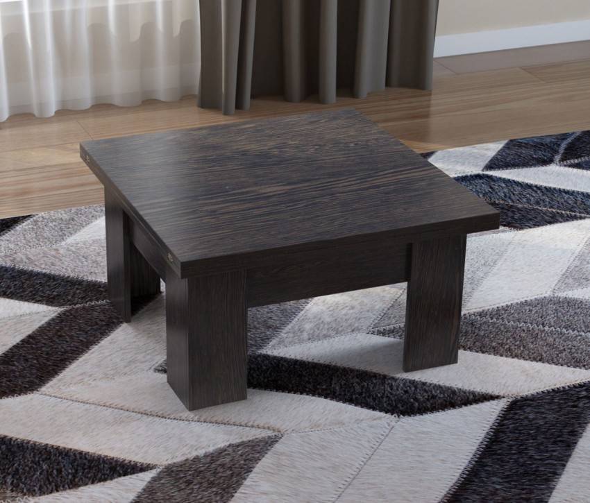 В сложенном виде журнальный стол-трансформер занимает минимальное пространство, его можно комфортно пододвинуть к дивану или разместить рядом с креслами у телевизора. В случае прихода гостей, такой столик легко превращается в просторный стол для обедов, который легко вместит 8 человек.