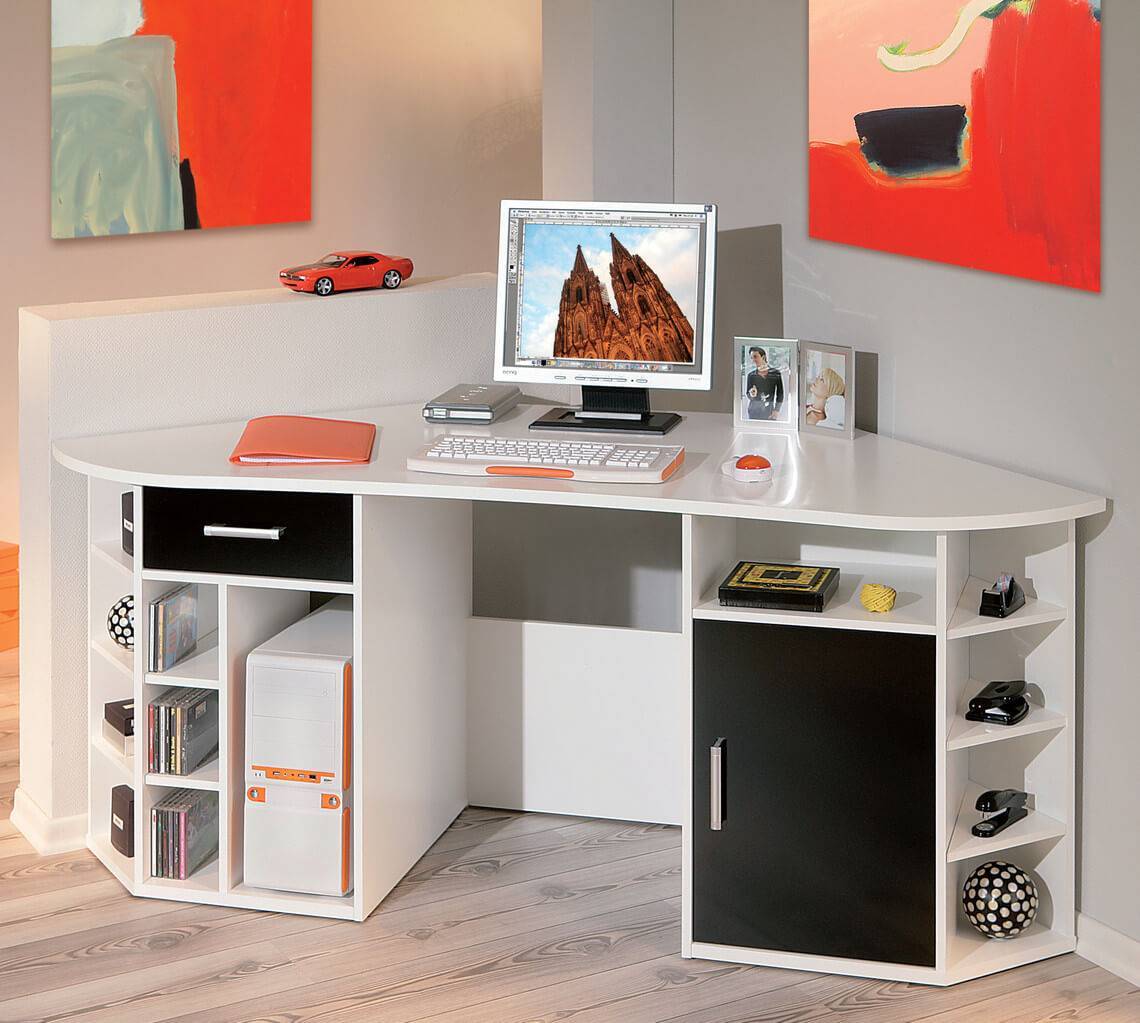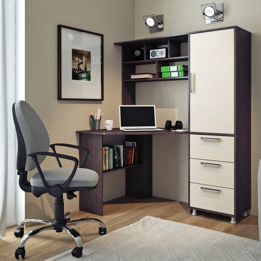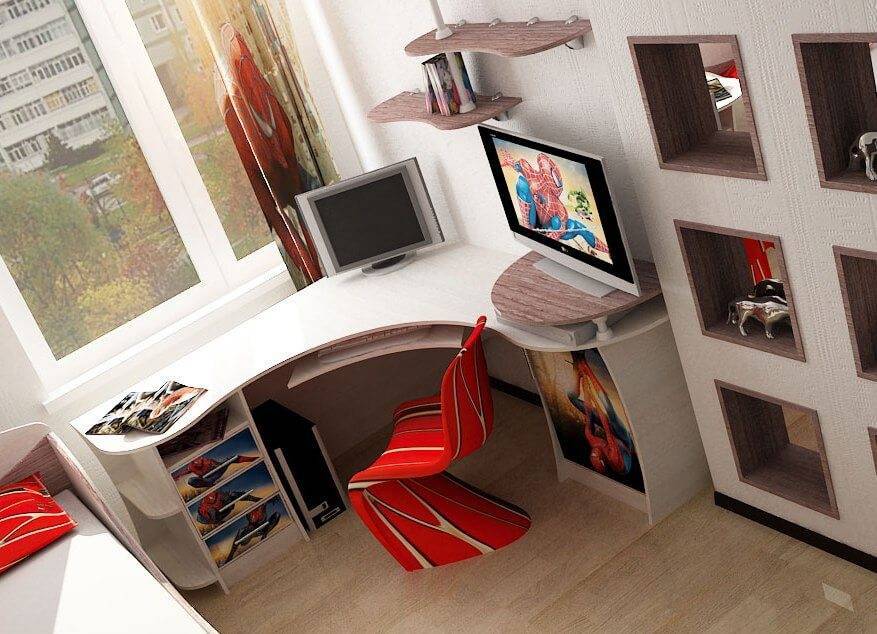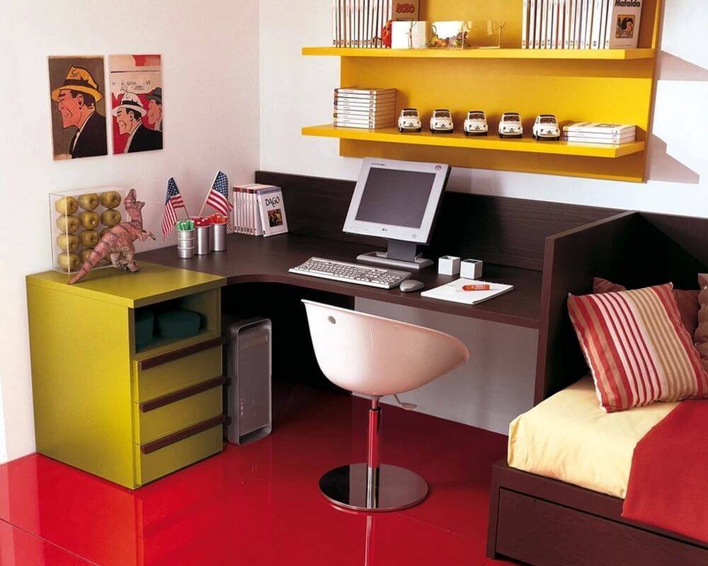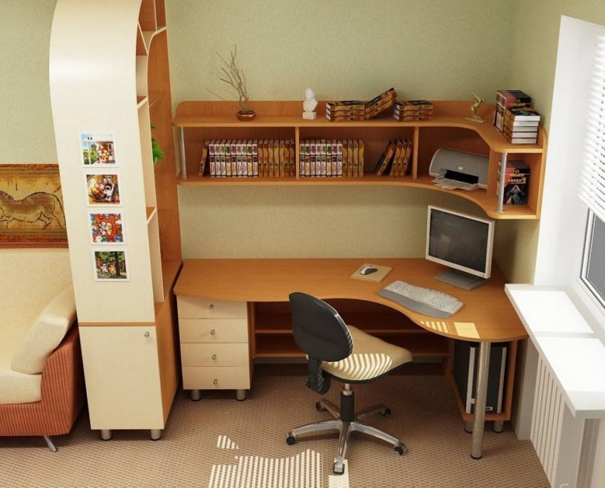 Угловой письменный стол — это отличный вариант для небольших комнат. В таких комнатах предметы мебели размещают так, чтобы они не препятствовали передвижению.