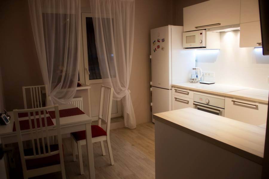 - Во-первых, освещенность такой кухни будет меньше, т.к. свет проходит через балконное помещение или лоджию.