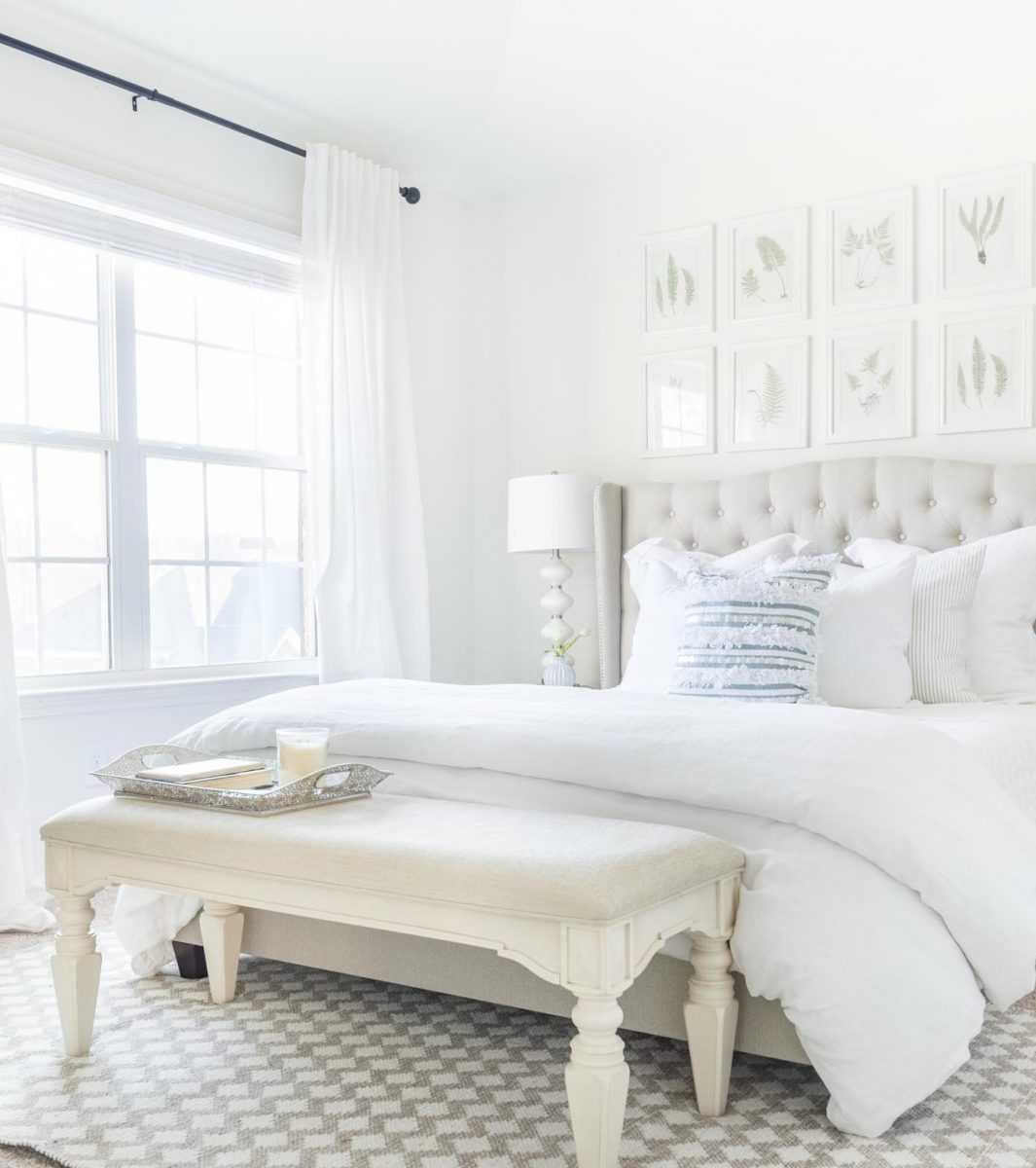 Однако, если подушки, пледы и стулья отличаются крупными рисунками или яркими оттенками, этот вариант лучше не использовать, иначе спальня превратится в слишком пестрое и сложное для нормального отдыха помещение.