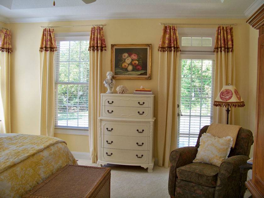 Это правильное расположение окна. Такую комнату легко декорировать. Главное – правильно выбрать стиль украшения. Если высота потолка позволяет, подойдут любые виды ламбрекенов. Невысокие потолки ограничивают выбор: лучше применять бандо, которые помогают сохранить ощущение пространства.