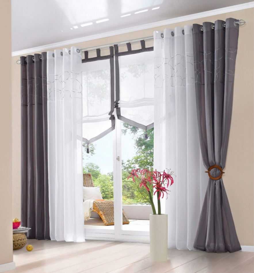Такое сочетание выигрышно потому, что здесь можно комбинировать разные по текстуре ткани меж собой. Скрывая при этом недочеты, образовавшиеся после проведения ремонтных работ на откосах или около карниза. Такая комбинация смотрится шикарно, пряча недостатки, выделяя именно те зоны, которые стоит выделить.