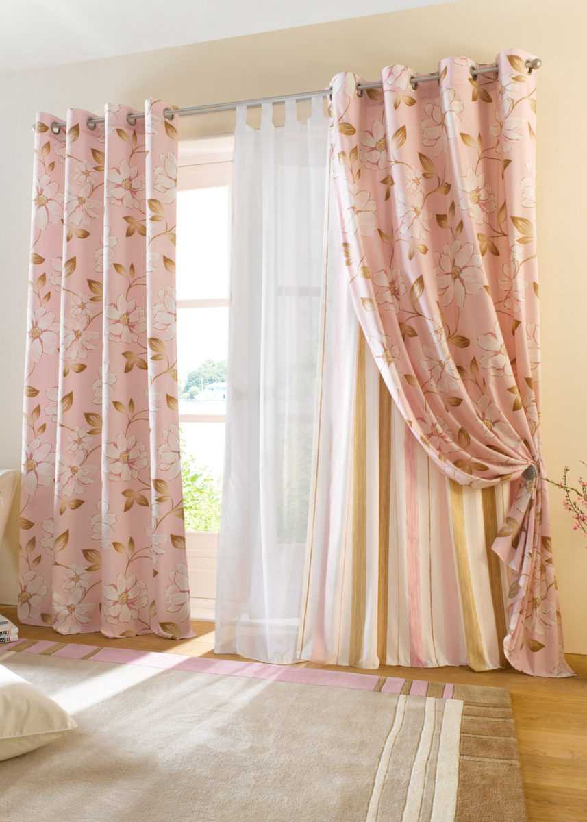 Очень редко можно встретить сочетание тюли с плотной тканью, расположенные на одной перекладине посредством люверсов. Это выглядит очень эффектно, однако подойдет далеко не в каждом случае, лучше всего обходить это решение стороной.