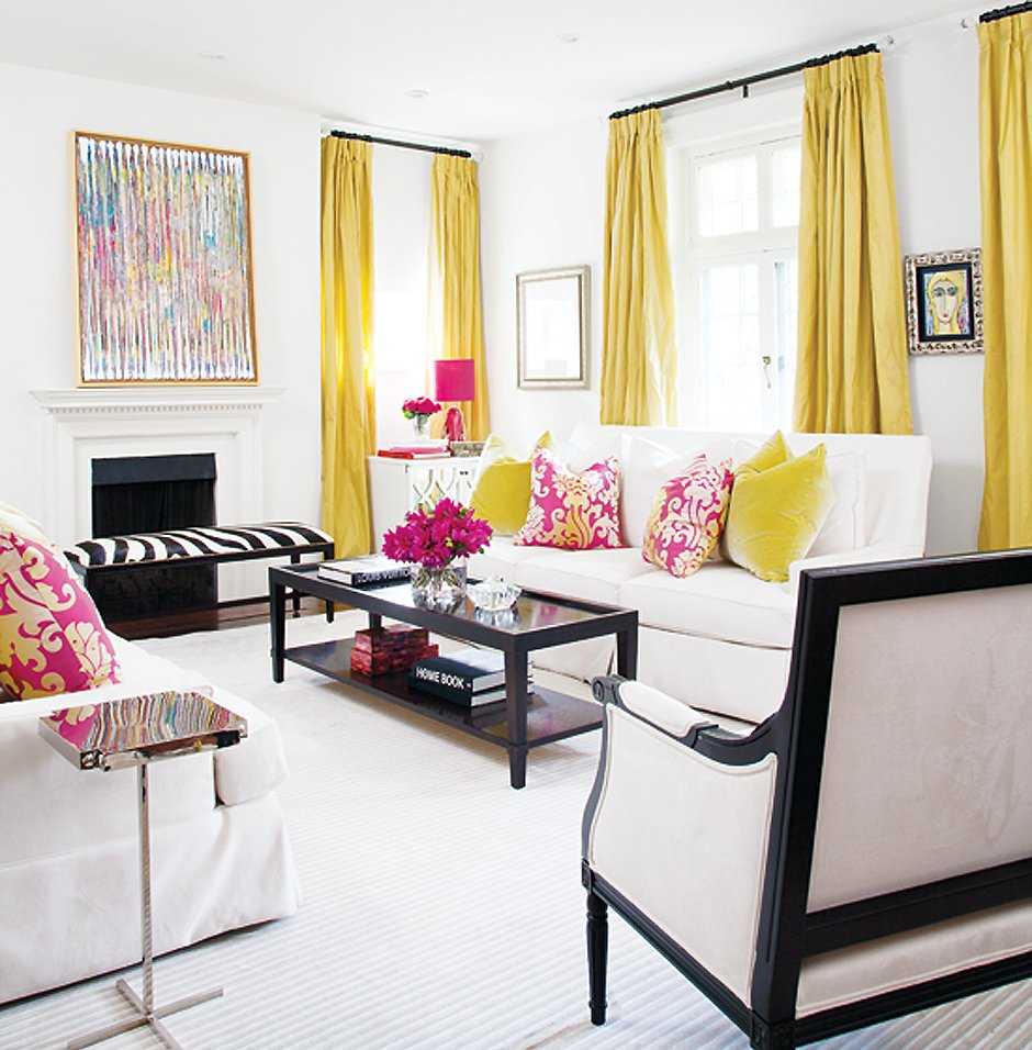 Красно-белая гостинаяФОТО: mrshoward.com Строгий ламбрекен для гостиной-столовойФОТО: tdfinteriors.com